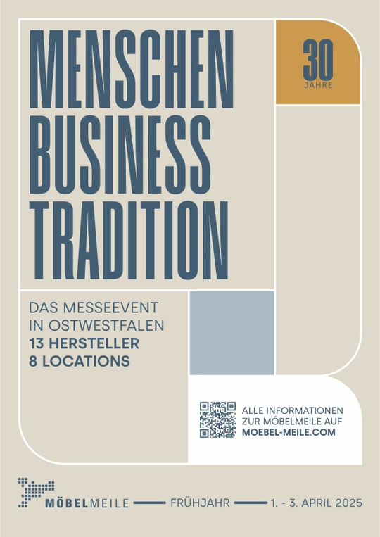Die 13 MÖBELMEILE-Partner demonstrieren mit den Angeboten wie stark die Messelandschaft in Ostwestfalen im Frühjahr aufgestellt ist. Auch über die MÖBELMEILE hinaus nimmt das Spektrum zu, denn zeitgleich zur MÖBELMEILE FRÜHJAHR und den Internationalen Partnertagen von Musterring finden auch die Partnertage Ostwestfalen 2025 in Bad Salzuflen statt. Die MÖBELMEILE-Friends Bert Plantagie und Lavita sind dann im Herbst wieder mit am Start.